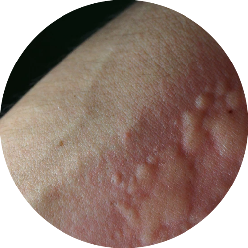 De vrijgekomen histamine in je lichaam zorgt ervoor dat je bloedvaten wijder worden, waardoor er vochtophopingen ontstaan ter hoogte van de huid en je allerlei vervelende symptomen ervaart:
