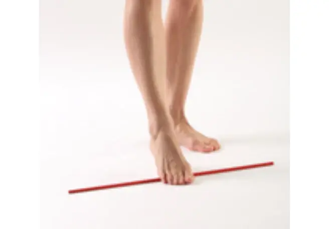 Placez une corde d’environ un mètre et d’épaisseur moyenne sur le sol et asseyez-vous devant la corde sur une chaise. Saisissez les extrémités de la corde avec les deux pieds. Essayez à présent de nouer la corde. Cinq répétitions.