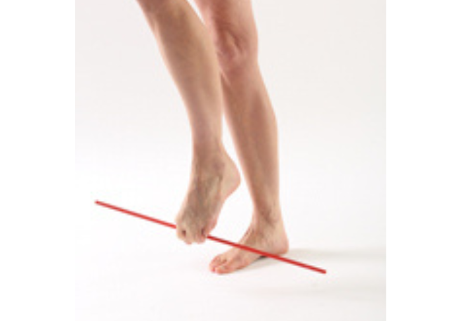 Placez une barre fine sous vos pieds. Faites-la rouler avec la plante des pieds en avant et en arrière (des talons aux orteils). Changez plusieurs fois de pied, pendant environ deux minutes.