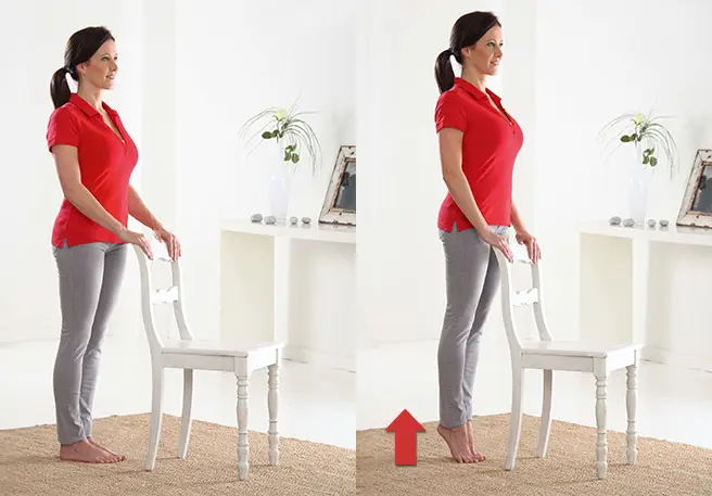 Tenez-vous debout avec les jambes fermées. Mettez-vous sur la pointe des pieds en soulevant les talons. Restez dans cette position pendant cinq minutes, puis reposez les talons. Répétez l’exercice dix fois.