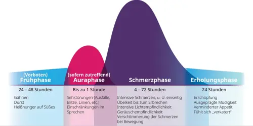 Migräneattacken sind von Person zu Person unterschiedlich. Ein Migräneanfall kann sich bei manchen bereits bis zu drei Tage vor der eigentlichen Attacke ankündigen. Dem Kopfschmerz gehen dann Hochstimmungen oder das Gefühl einer besonderen Leistungsfähigkeit voraus. Bei Betroffenen können aber auch vermehrte Gereiztheit oder depressive Verstimmungen aufkommen. Manche verspüren mehr Hunger. Andere wiederum leiden an Appetitlosigkeit.1