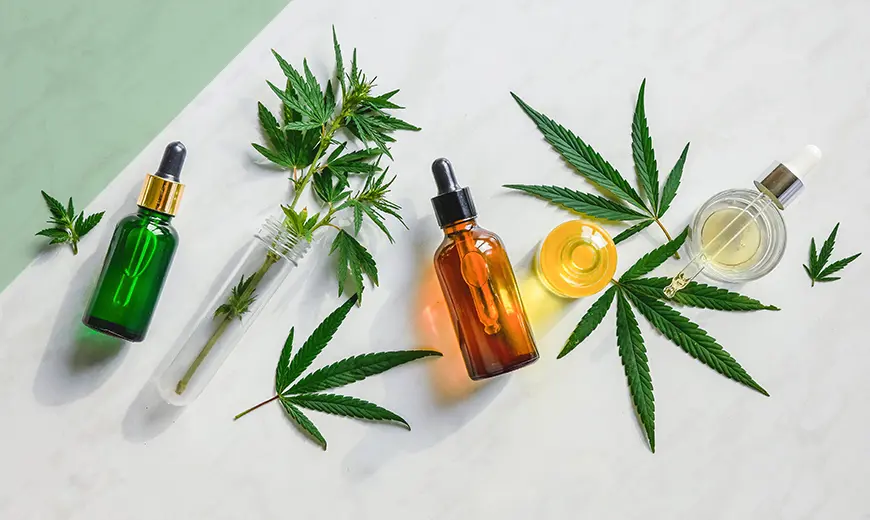 Cannabinoide sind Inhaltsstoffe der Hanfpflanze (Cannabis).1 Bei Cannabinoiden handelt es sich um sogenannte „sekundäre Pflanzenstoffe“. Sie werden von Drüsen, die sich auf der Pflanzenoberfläche befinden, in Form von Harz gebildet. Dieser Harz dient der Pflanze dazu, sich vor Fressfeinden und Mikroorganismen zu schützen.2 Es gibt mittlerweile über 100 bekannte Cannabinoide, das wohl bekannteste ist Tetrahydrocannabinol, kurz THC.3 Es war das erste Cannabinoid, dessen chemische Struktur identifiziert wurde4 und gehört zusammen mit Cannabidiol, abgekürzt CBD, zu den bedeutendsten Inhaltsstoffen der Hanfpflanze.3