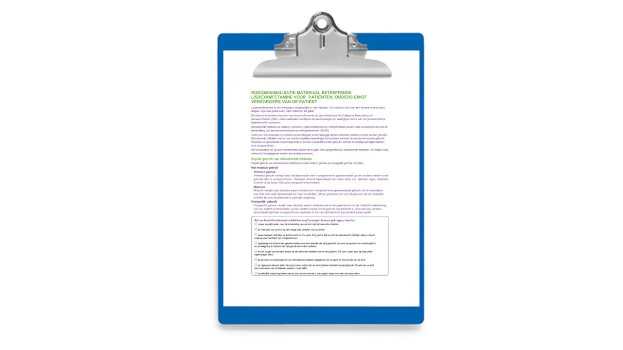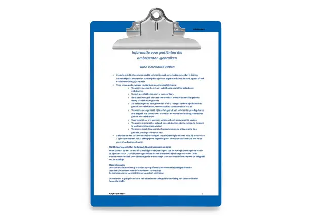 Hieronder vindt u extra downloads van additionele Risico Minimalisatie Materialen (aRMM) voor patiënten en professionals.