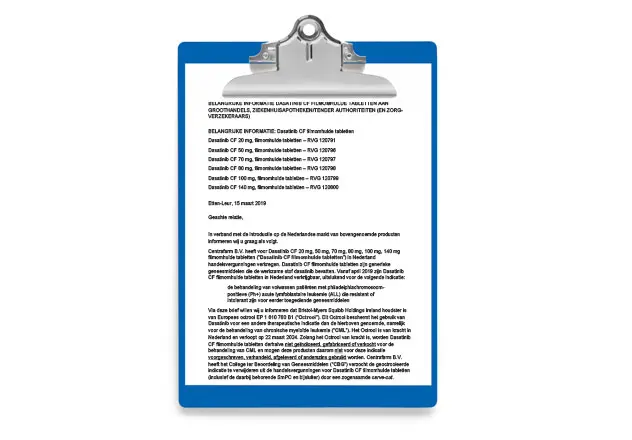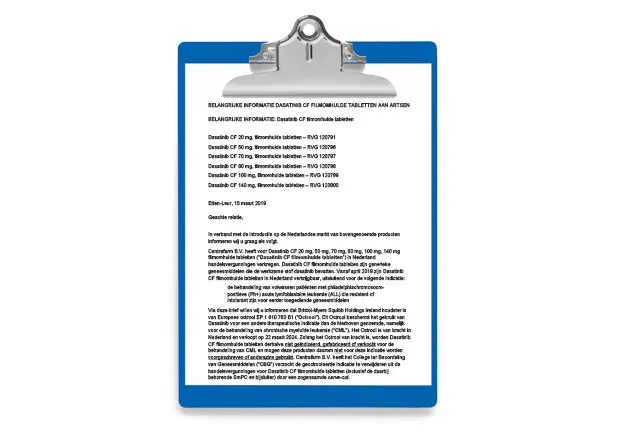 Belangrijke informatie Dasatinib CF voor groothandels, ziekenhuisapotheken en zorgverzekeraars
