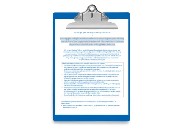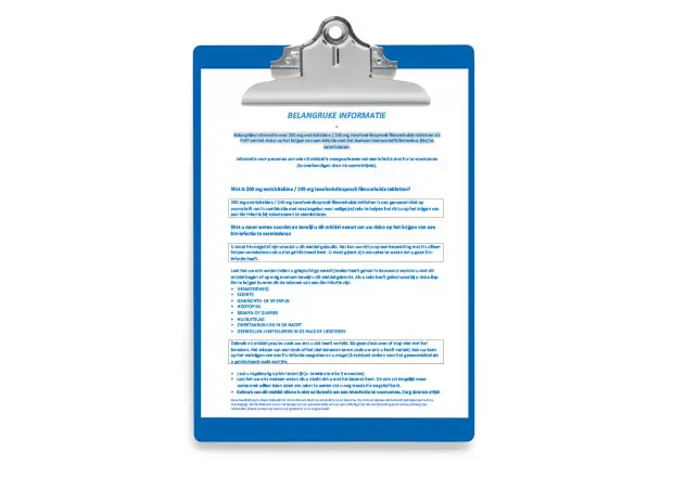 Belangrijke informatie voor patiënten die Emtricitabine/Tenofovir gebruiken als profylaxe voor blootstelling (PrEp)