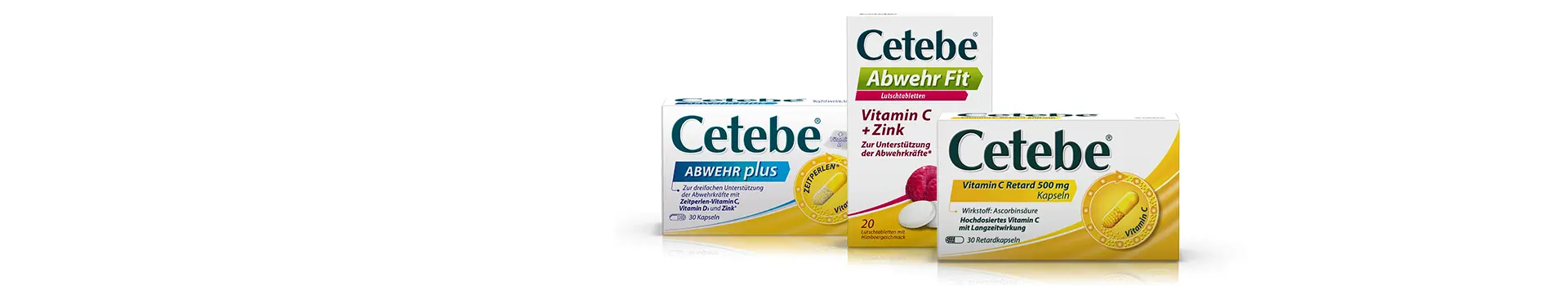 Wir fühlen uns schlapp, die Nase läuft und das erste Kratzen im Hals macht sich bereits bemerkbar: Kämpfen wir gegen eine Erkältung an, muss sich unser Immunsystem unter Beweis stellen. Cetebe® Kapseln ABWEHR plus und Cetebe® Tabletten Abwehr Fit können dabei helfen, unser Immunsystem zu unterstützen. Vertrauen Sie für Ihre Gesundheit auf Cetebe® Vitaminkapseln, um unerwünschte Krankheitserreger wieder loszuwerden.