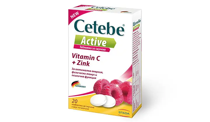 Витамин С и цинкът в Cetebe Active подпомагат и поддържат оптимални нива на енергия, физически тонус и психична функция.