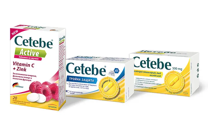 Повечето продукти от гамата Cetebe са в капсули, които съдържат Витамин С произведен с революционната Cetebe Time pearlTM технология, позволяваща удълженото освобождаване на активната съставка. Механизмът на действие на технологията позволява продължително снабдяване на човешкия организъм с малки порции Ввитамин С през голяма част от денонощието, което позволява пълното му усвояване.