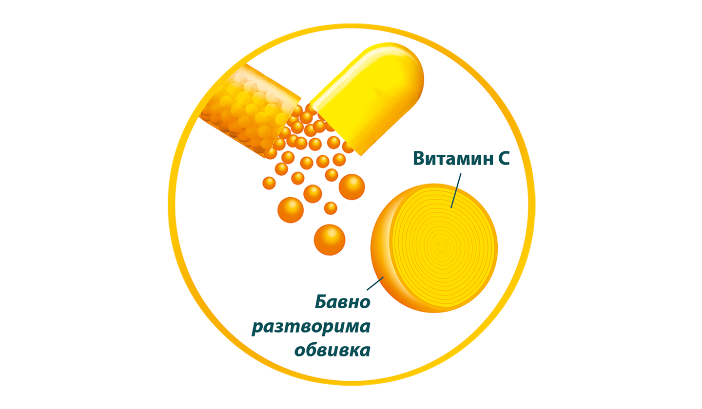 Витамин С се освобождава към тялото от микроперлите пласт по пласт, което осигурява продължително подаване на Витамин С часове наред през денонощието.