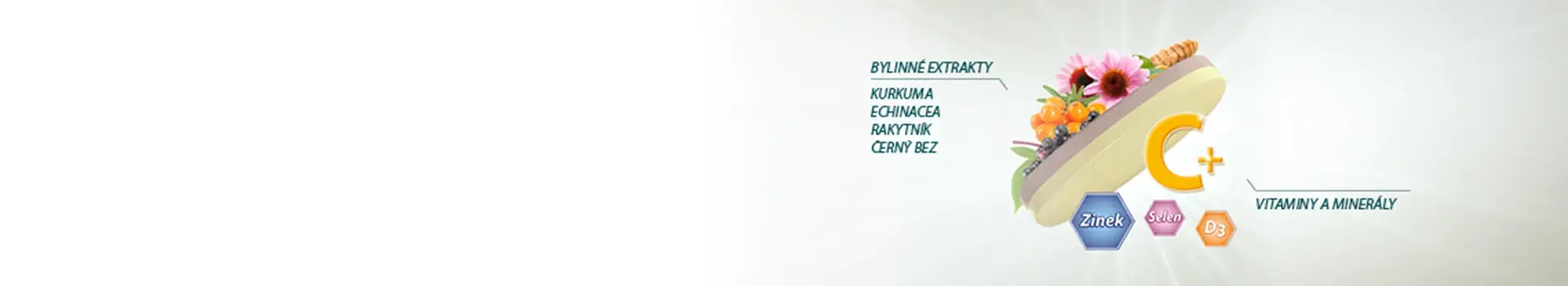 Je to jednoduché! Doplněk stravy Cetebe® ImunActiv HERBA obsahuje jak VITAMINY a MINERÁLY, tak i BYLINNÉ EXTRAKTY, a to ve speciální 2vrstvé tabletě aktivní látky, které Vaše imunita pro svoji normální funkci potřebuje. Vysoká dávka vitaminu C, zinku, selenu a vitaminu D3 pro akutní podporu imunitního systému, echinacea, kurkuma a černý bez pro zdraví dýchacích cest. Tento prémiový doplněk stravy s vitaminy, minerály a optimální kombinací 3 bylinných extraktů ve speciální 2vrstvé tabletě oceníte zejména během chladných měsíců s vyšším výskytem nachlazení. První vrstva tablety Cetebe® ImunActiv HERBA obsahuje vitaminy a minerály a uvolňuje se pomalu. Druhá vrstva tablety Cetebe® ImunActiv HERBA obsahuje bylinné extrakty a využívá zrychlené uvolňování aktivních látek.
