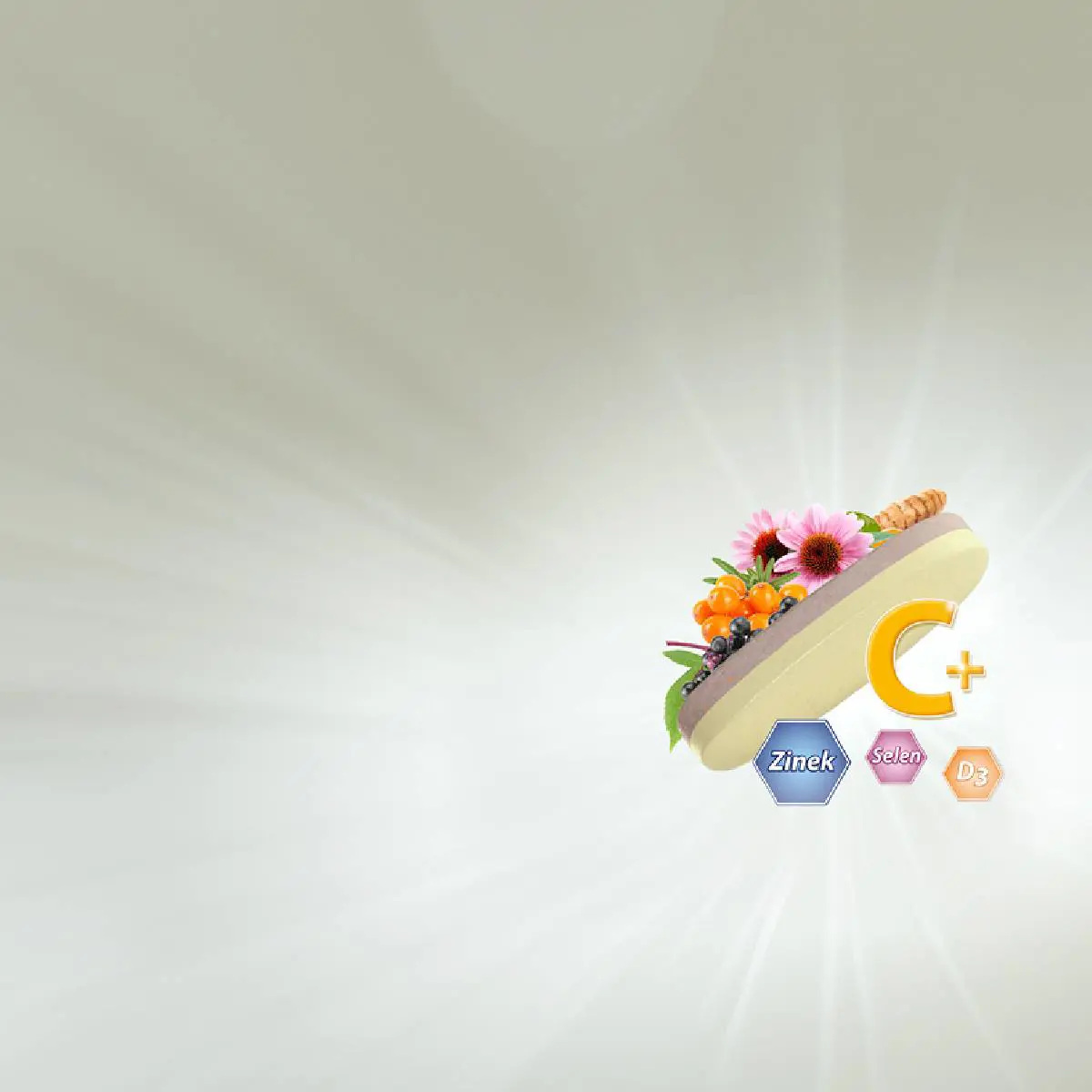 Vitamin C přispívá k normální funkci imunitního systému, k normální tvorbě kolagenu pro normální funkci krevních cév, chrupavek, kostí, kůže a dásní, k normálnímu energetickému metabolismu, k normální činnosti nervové soustavy, k normální psychické činnosti, k ochraně buněk před oxidativním stresem, ke snížení míry únavy a vyčerpání, k udržení normální funkce imunitního systému během intenzivního fyzického výkonu a po něm. Zinek přispívá k normální funkci imunitního systému, k ochraně buněk před oxidativním stresem, k udržení normálního stavu kostí, vlasů, nehtů, pokožky a zraku, k udržení normální hladiny testosteronu v krvi. Vitamin D přispívá k normálnímu stavu kostí a zubů, k normální činnosti svalů, k normální hladině vápníku v krvi, k normálnímu vstřebávání vápníku a fosforu a podílí se na procesu dělení buněk.