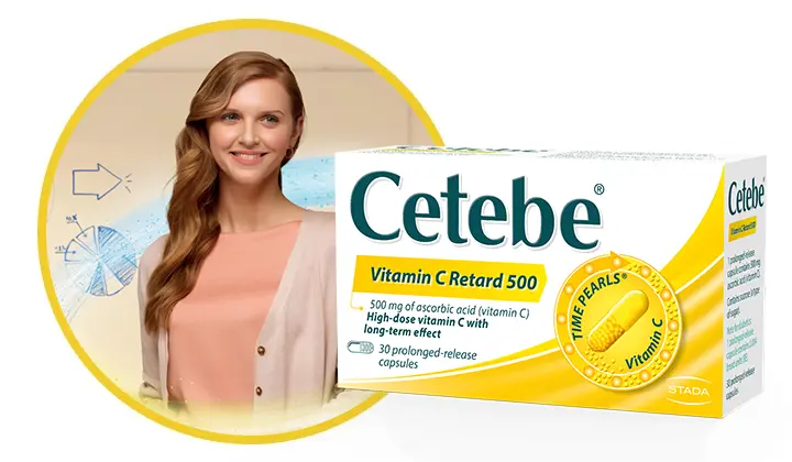 Cetebe® Vitamin C Retard 500** prevents Vitamin C deficiency as well as treating Vitamin C deficiency disorders. It provides Vitamin C to the body over several hours, if sufficient provision is not assured by diet.