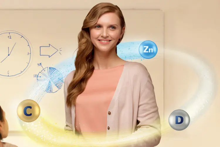 A strong combination of Vitamin C and Vitamin D, Zink or selected herbs to support the body´s defenses and the immune system.