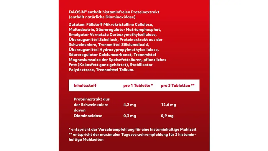 Enthält histaminfreien Proteinextrakt (natürliche Diaminoxidase)