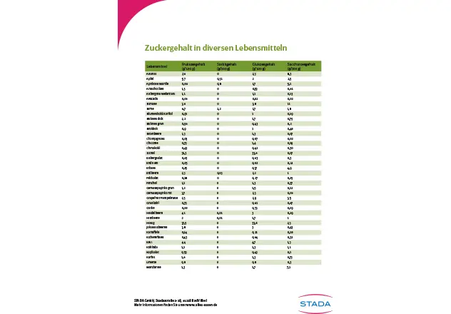 Laden Sie sich hier die Zuckergehaltstabelle für Fruchtzucker herunter.
