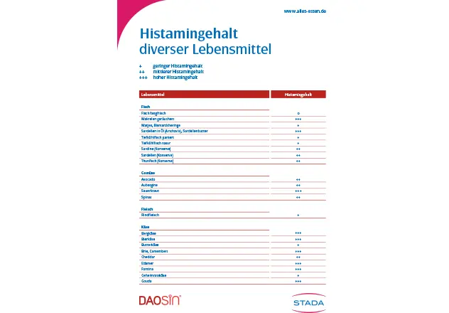 Laden Sie sich hier die Lebensmitteltabelle für Histamin herunter.