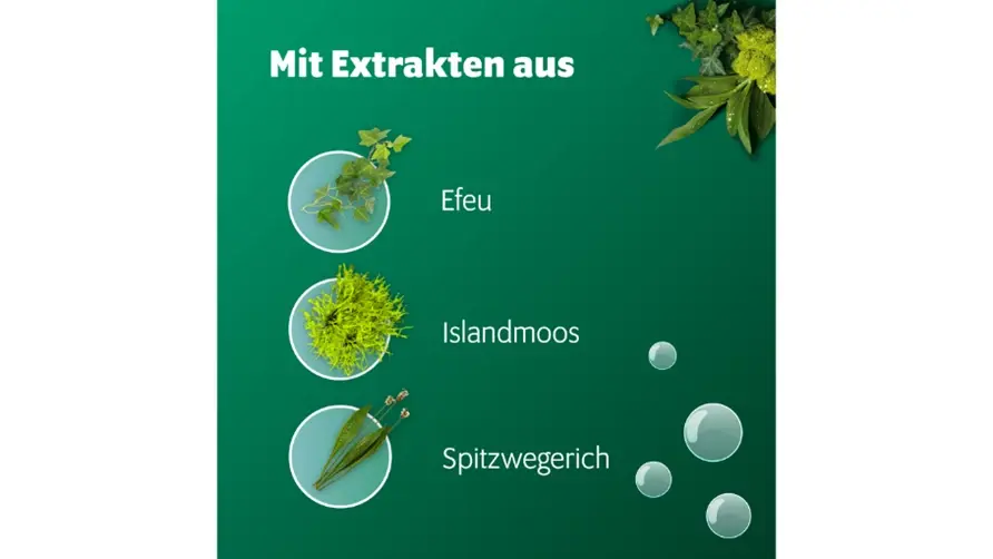 - Mit Extrakten aus Efeu, Islandmoos und Spitzwegerich