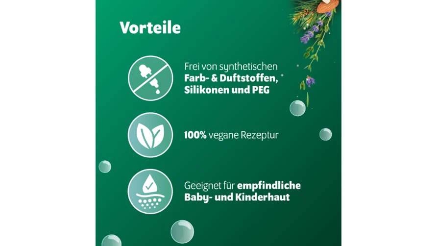 Vegan, frei von synthetischen Farb- & Duftstoffen, Silikonen sowie PEG