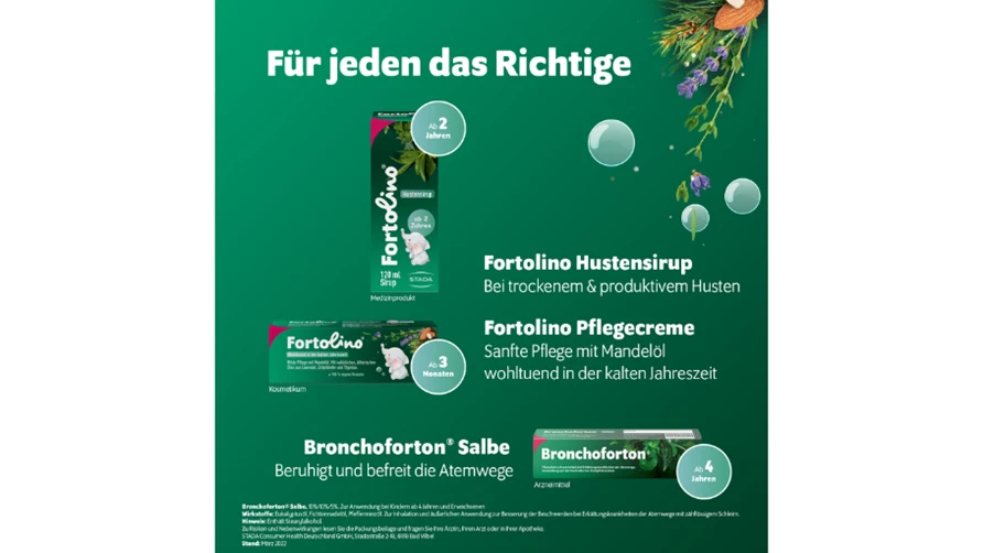 Natürlich profitieren auch Eltern von dem entspannenden Effekt der Fortolino® Pflegecreme. Alternativ können Erwachsene auch auf Bronchoforton® Salbe zurückgreifen.