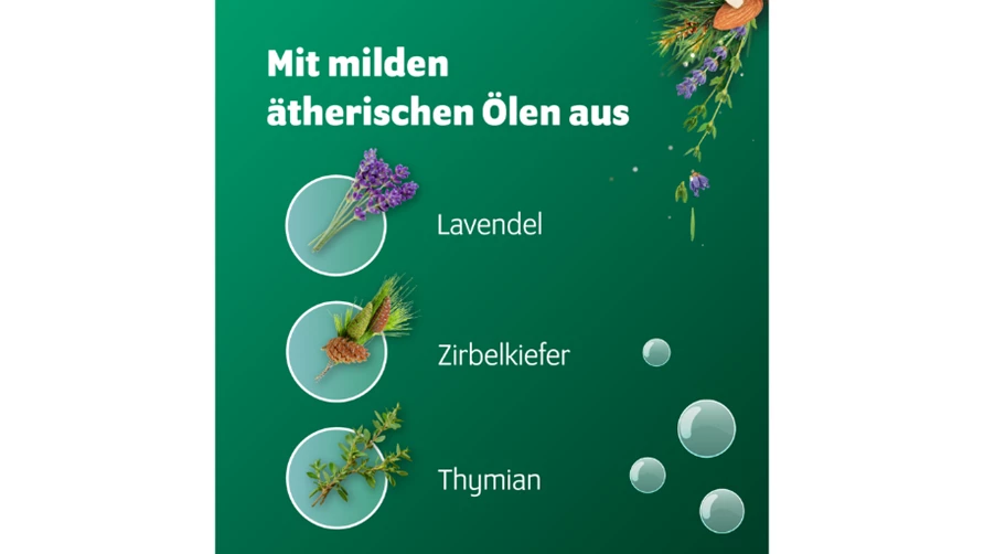 - Mit milden ätherischen Ölen aus Lavendel, Zirbelkiefer und Thymian