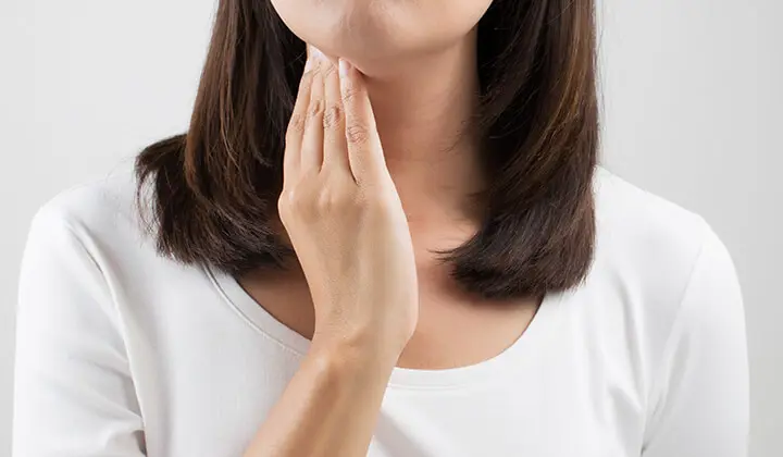 Wenn Mund und Rachen mit Erkältungsviren infiziert sind, schmerzt der Hals und auch Schlucken und Sprechen tun weh.