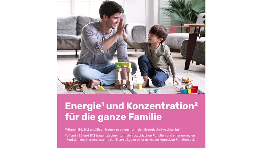 1 Vitamin B6, B12 und Eisen tragen zu einem normalen Energiestoffwechsel bei.