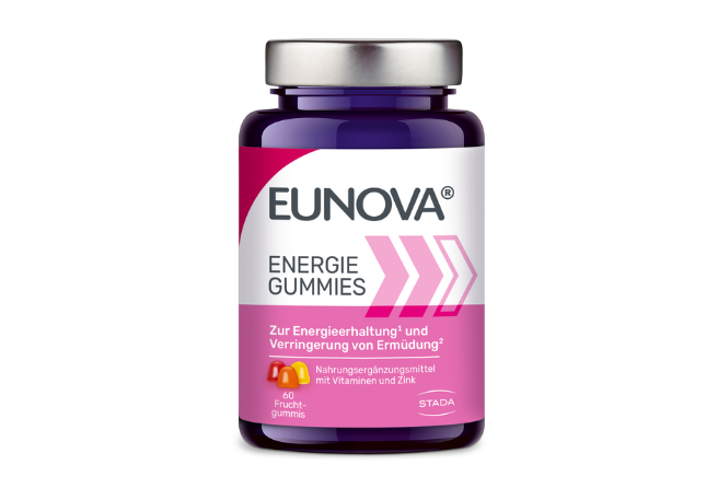 Als Eltern möchten Sie Ihren Kindern helfen, den Anforderungen im Alltag und in der Schule gerecht zu werden und ihre Träume zu erfüllen. Die leckeren EUNOVA® Schulhelden Gummies enthalten Vitamin B6, B12 und D, die zu einer normalen Funktion des Immunsystems beitragen sowie Eisen, das die kognitive Entwicklung von Kindern fördern kann. Außerdem helfen sie dabei, das Energie1- und Konzentrationslevel2 der ganzen Familie zu unterstützen. Mit Aroniabeeren-Extrakt und ohne künstliche Farbstoffe und Süßungsmittel eignen sich die EUNOVA® Schulhelden Gummies als Nahrungsergänzung, um die täglichen Herausforderungen zu meistern.