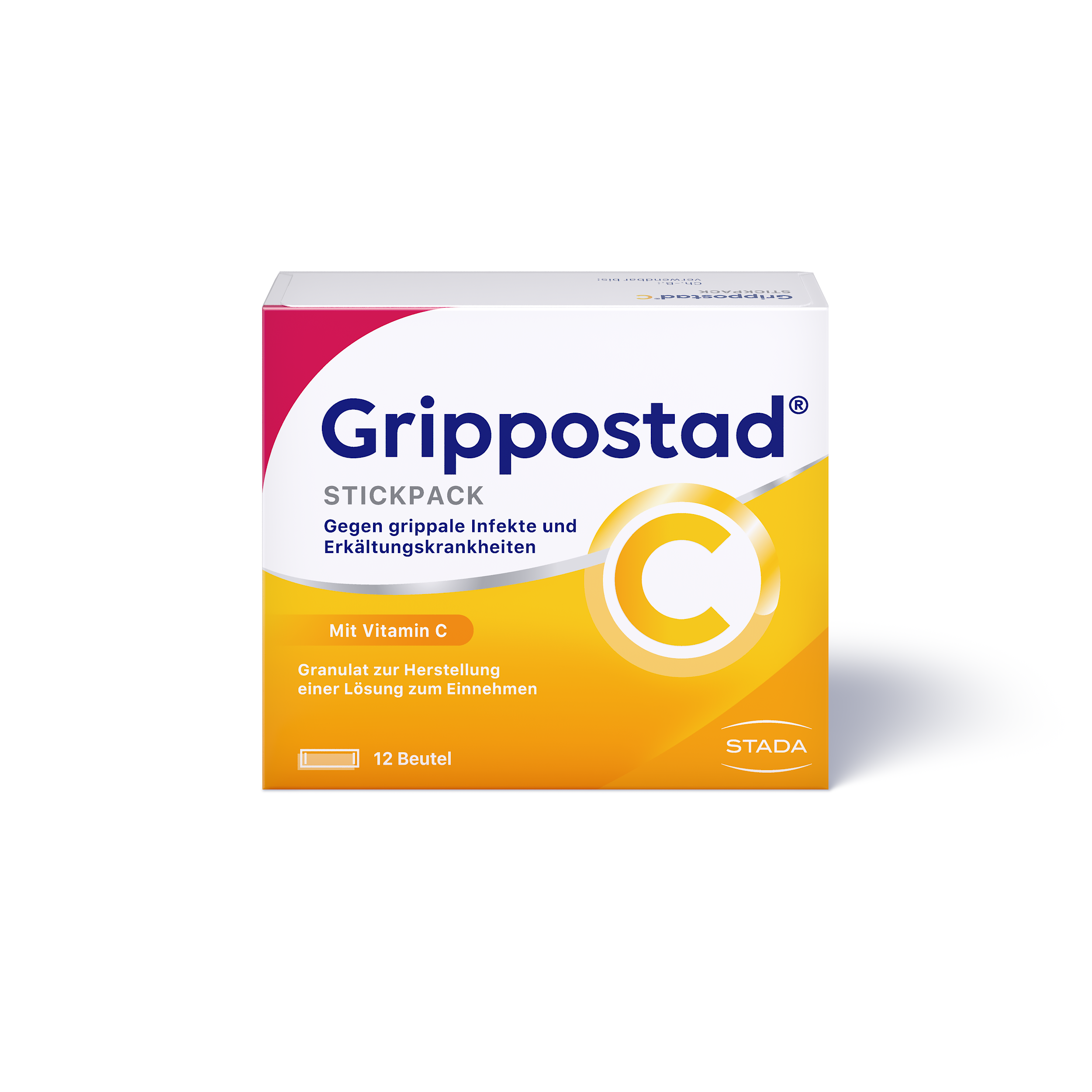 Wirkstoffe: Paracetamol, Ascorbinsäure (Vitamin C), Coffein, Chlorphenaminmaleat. Zur Behandlung von gemeinsam auftretenden Beschwerden wie Kopf- und Gliederschmerzen, Schnupfen und Reizhusten im Rahmen einer einfachen Erkältungskrankheit. Bei gleichzeitigem Fieber oder erhöhter Körpertemperatur wirkt Grippostad® C STICKPACK fiebersenkend. Grippostad® C STICKPACK enthält mehrere Wirkstoffe, die jeweils in einer festgelegten Menge dosiert sind. Daher kann die Dosis nicht individuell angepasst werden, wenn Sie überwiegend unter einem der oben genannten Symptome leiden. Sprechen Sie in solchen Fällen bitte mit Ihrem Arzt oder Apotheker, dieser wird Ihnen ein Arzneimittel anderer Zusammensetzung empfehlen.