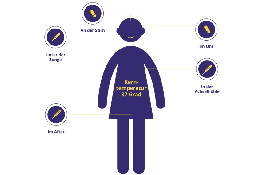 Generell gilt, dass Messungen im After und unter der Zunge am verlässlichsten sind. Beim Fiebermessen im Ohr, unter der Achsel oder an der Stirn kann es dagegen zu Fehlmessungen und Abweichungen kommen.