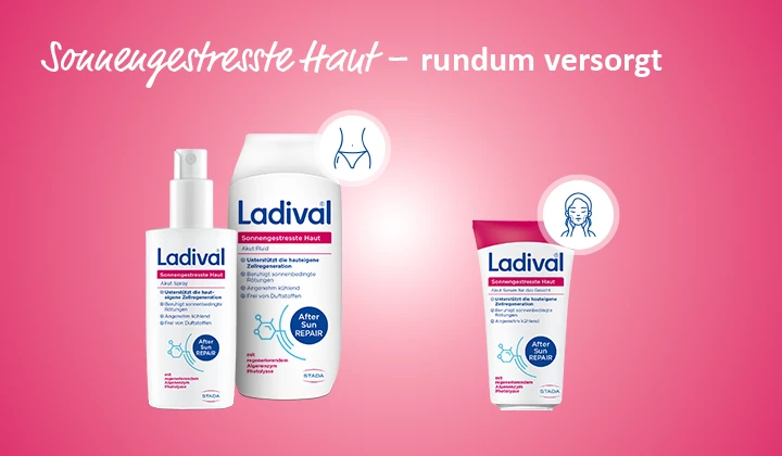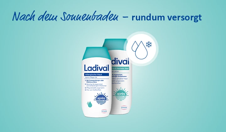 Die Haut mit Feuchtigkeit zu versorgen, steht nach dem Sonnenbad an erster Stelle. Ladival® After Sun-Produkte füllen die Feuchtigkeitsspeicher der Haut wieder auf und wirken zudem angenehm kühlend. Pflegende Inhaltsstoffe wie Panthenol und Vitamin E helfen dabei, Rötungen und Spannungsgefühl zu lindern. Zudem wird die Haut 24 Stunden mit Feuchtigkeit versorgt. Die beiden After Sun-Produkte sind sowohl für Erwachsene als auch für Kinder und Babys ab 6 Monaten geeignet.