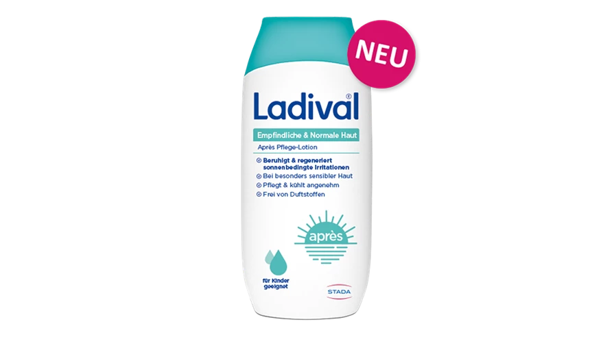 Die Ladival® Après-Lotion für empfindliche und normale Haut bietet intensive Pflege nach einem ausgiebigen Sonnenbad. Die Öl-in-Wasser-Emulsion sorgt für ein angenehmes Hautgefühl und beruhigt die Haut mit regenerierenden Inhaltsstoffen wie Panthenol, Bisabolol und Vitamin E. Die milde Rezeptur ist ideal für sensible und zu Neurodermitis neigende Haut geeignet, brennt nicht in den Augen und eignet sich ebenfalls für Babys ab 6 Monaten.