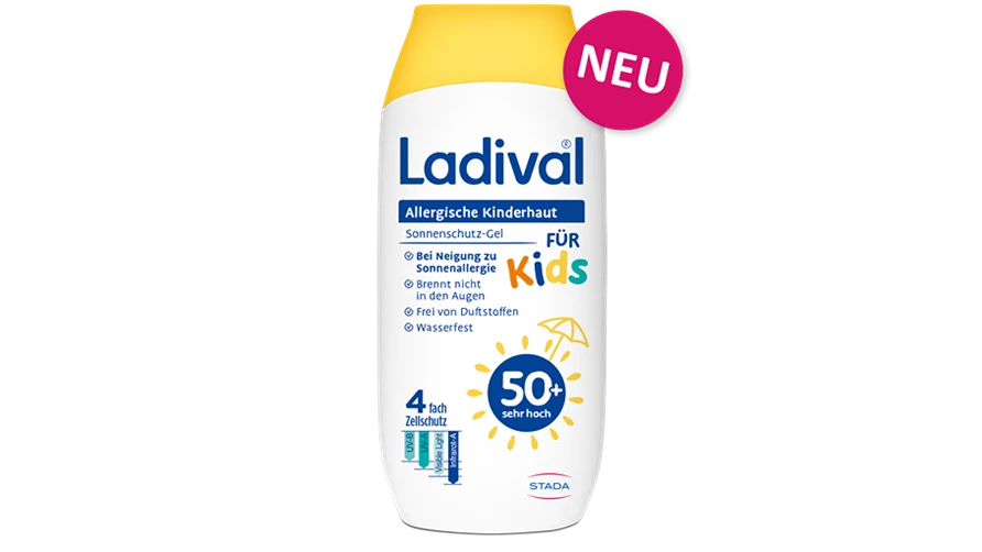 - Tragen Sie das Ladival® Allergische Haut Gel für Kinder immer großzügig auf den ganzen Körper auf, um einer Sonnenallergie bei Kindern vorzubeugen. Zu wenig Sonnenschutzmittel verringert den Lichtschutzfaktor.
