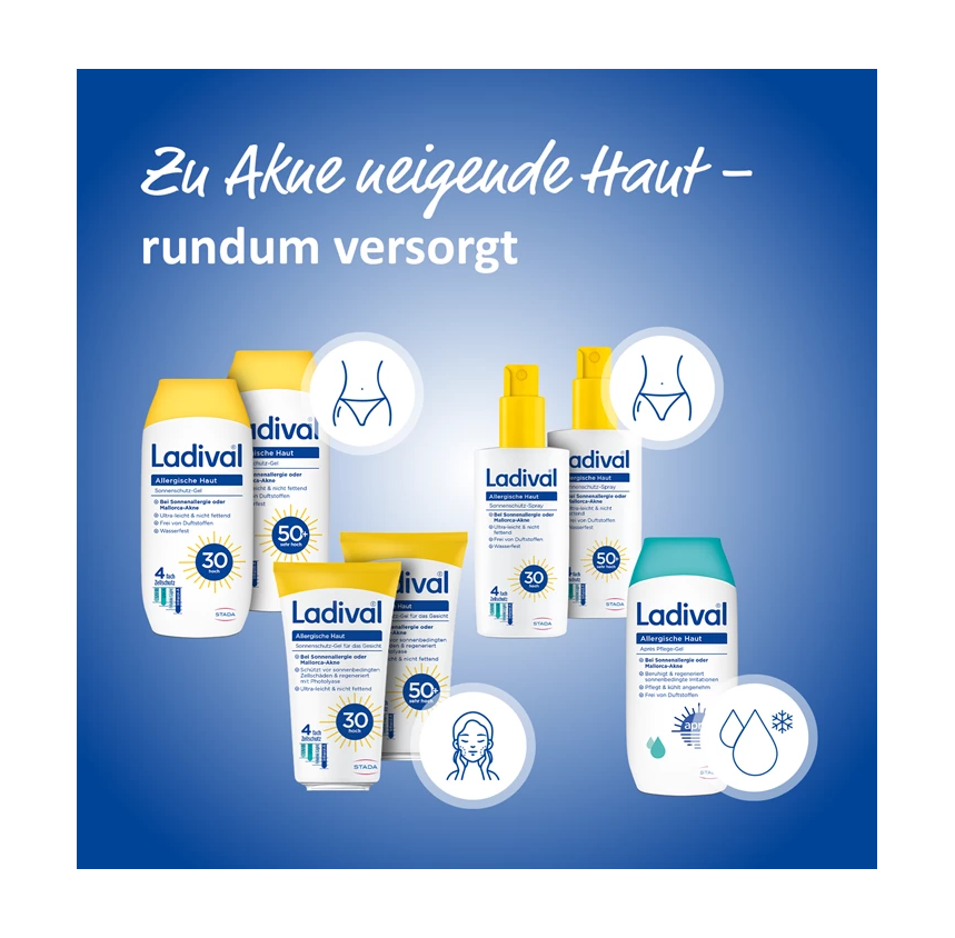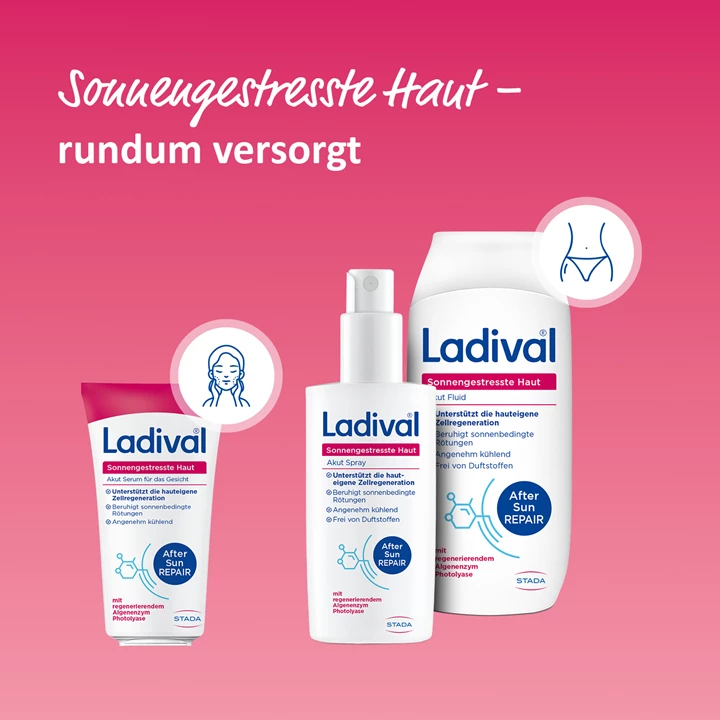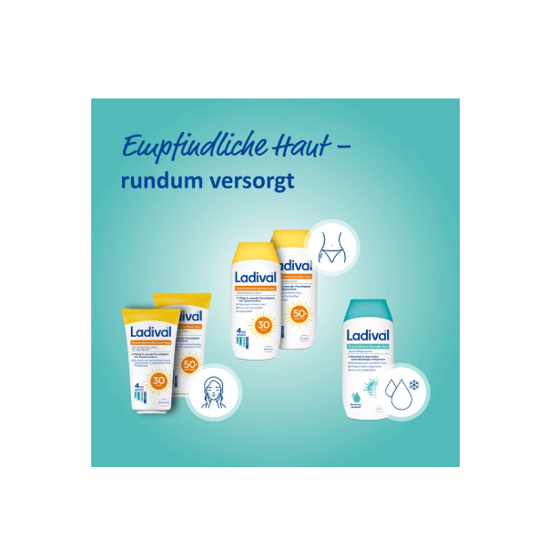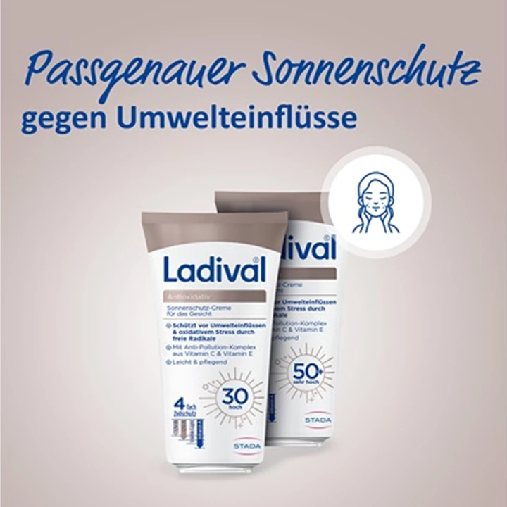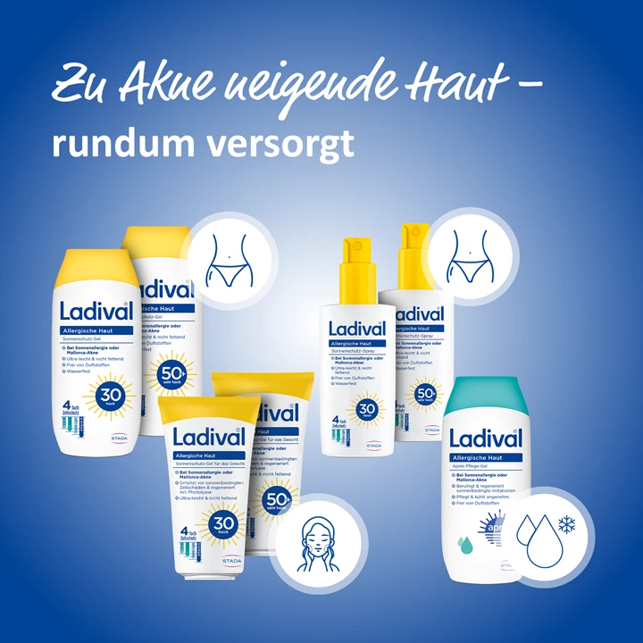 - Sonnenschutz mit Ladival® 4-fach Zellschutz mit LSF 30 oder 50+