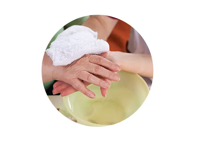 Entfernen Sie nach der Körperwäsche stets sorgfältig sämtliche Seifenrückstände und trocknen Sie die Haut des Pflegebedürftigen sanft aber gründlich. Das gilt insbesondere in Hautfalten und zwischen den Fingern und Zehen. Um Dermatitis oder Hautpilzen vorzubeugen, empfiehlt es sich, diese Stellen mit Multilind® Heilsalbe einzucremen.