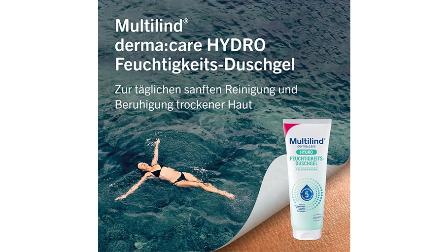 Multilind® derma:care HYDRO Feuchtigkeits-Duschgel bei der täglichen Reinigung der Haut sanft auf der angefeuchteten Haut verteilen und anschließend sorgfältig abspülen.