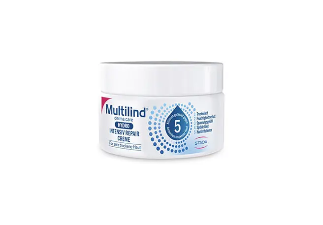 Die Multilind® HYDRO Intensiv Repair Creme sorgt für eine aufbauende und langanhaltende Pflege, wenn sehr trockene Haut besonders viel Feuchtigkeit benötigt. Die Formel ist gegen fünf Anzeichen trockener Haut getestet.