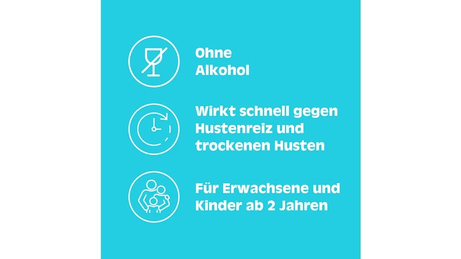 • Hustenstiller ohne Alkohol, Gluten, Lactose, Konservierungsmittel und künstliche Aromen