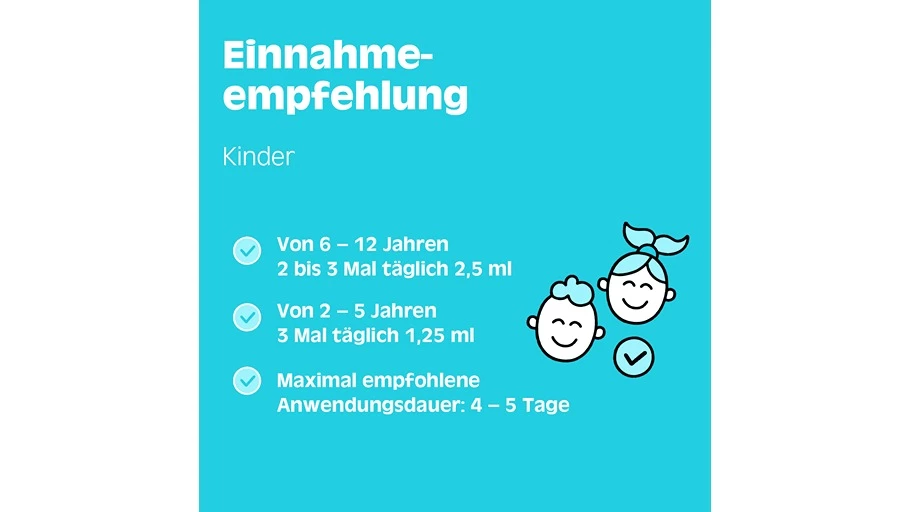 Kinder von 2 bis 5 Jahren: 3-mal täglich 1,25 ml