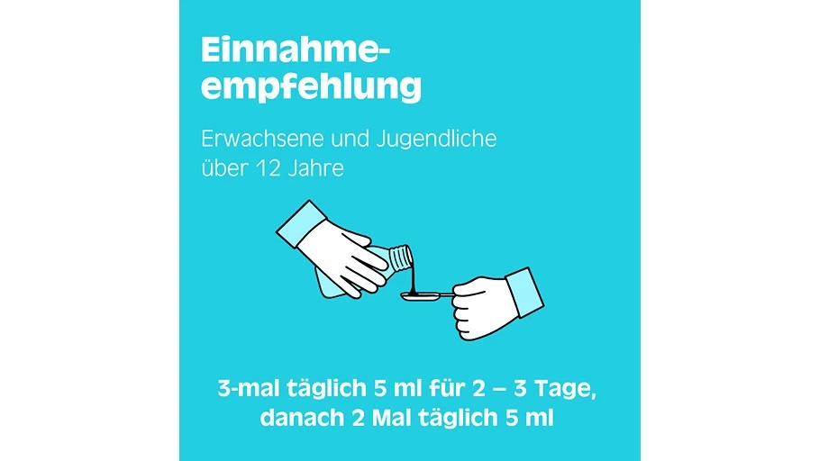 Erwachsene und Jugendliche über 12 Jahre: 3-mal täglich 5 ml Silomat® Hustenlöser Ambroxol für 2 - 3 Tage, danach 2-mal täglich 5 ml