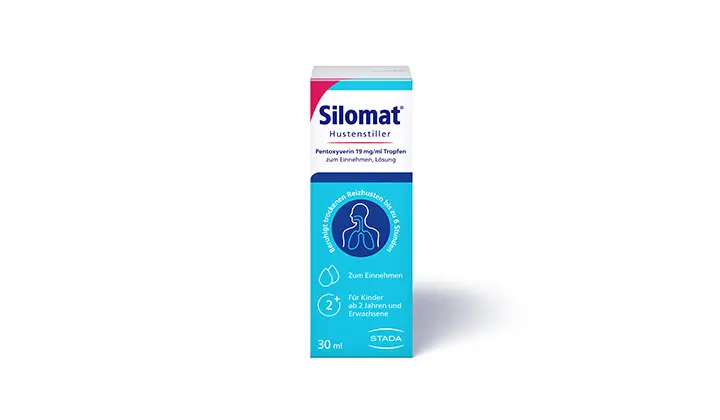 Die Silomat® Pentoxyverin Tropfen wirken schnell nach nur 10 bis 20 Minuten und haben eine langanhaltende Wirkdauer von 4 bis 6 Stunden. Die Hustentropfen bei Reizhusten eignen sich für Erwachsene und Kinder ab 2 Jahren – frei von Alkohol, Zucker und Farbstoffen. Der Wirkstoff ist gut verträglich und somit auch für Patienten mit Asthma und Diabetes geeignet.