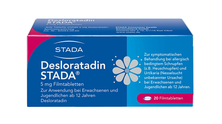 Desloratadin STADA®bessert die Symptome bei allergischer Rhinitis (durch eine Allergie hervorgerufene Entzündung der Nasengänge, beispielsweise Heuschnupfen oder Hausstaubmilben-Allergie). Diese Symptome beinhalten Niesen, laufende oder juckende Nase, Juckreiz am Gaumen und juckende, gerötete oder tränende Augen. Es wird ebenfalls angewendet zur Besserung der Symptome bei Urtikaria (ein durch eine Allergiehervorgerufener Hautzustand). Diese Symptome beinhalten Juckreiz und Quaddeln. Die Besserung dieser Symptome hält einen ganzen Tag an und hilft Ihnen, Ihre normalen Alltagsaktivitäten wieder aufzunehmen und Ihren Schlaf wiederzufinden. Wenn Sie sich nach 10 Tagen nicht besser oder gar schlechter fühlen, wenden Sie sich an Ihren Arzt.