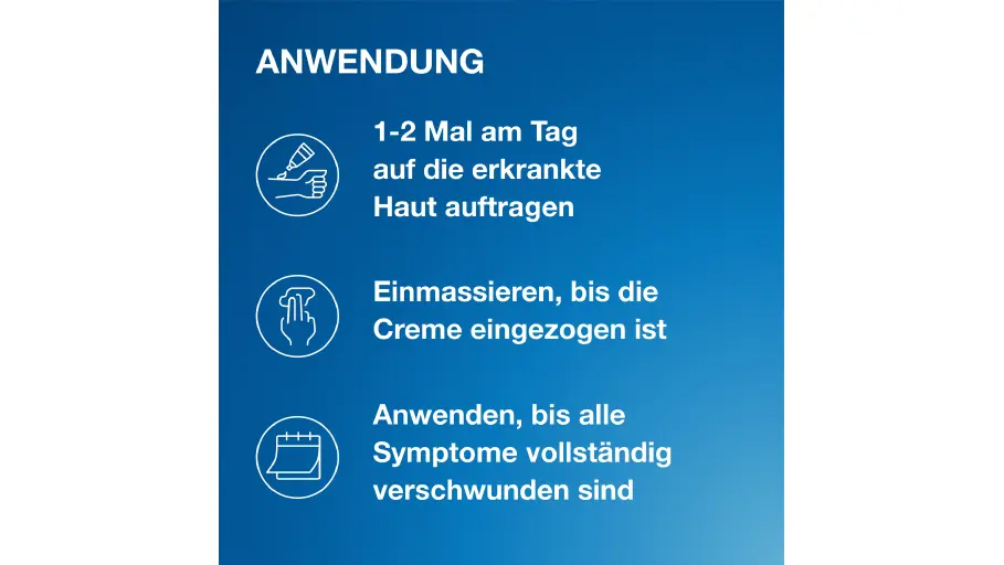 Massieren Sie die Terzolin®-Creme mit dem Finger so lange ein, bis sie eingezogen ist. Nach Anwendung der Creme auf das seborrhoische Ekzem sollten Sie sich gründlich die Hände waschen.