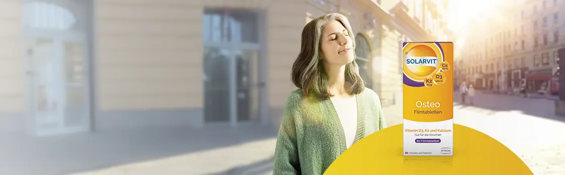 SOLARVIT® Osteo Filmtabletten sind exklusiv in Apotheken in einer 60 Stück Packung erhältlich.