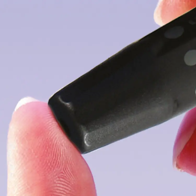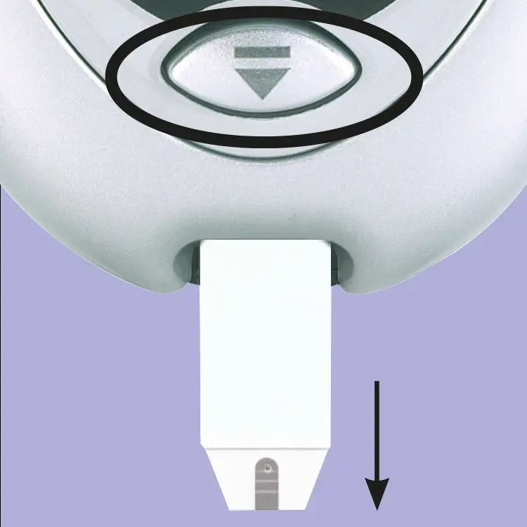Setzen Sie die Stechhilfe an der seitlichen Fingerkuppe von Mittel-, Ring- oder kleinen Finger an. Drücken Sie den Auslöseknopf.