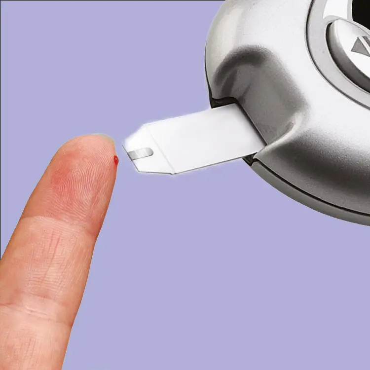 - Wechseln Sie die Finger und Hände ab. Für viele Patienten ist es angenehmer, nicht in den Zeigefinger und Daumen zu stechen, da diese beiden im Alltag am häufigsten beansprucht werden.