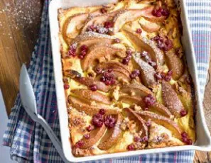 Clafoutis mit Cranberrys, Heidelbeeren und Mandeln