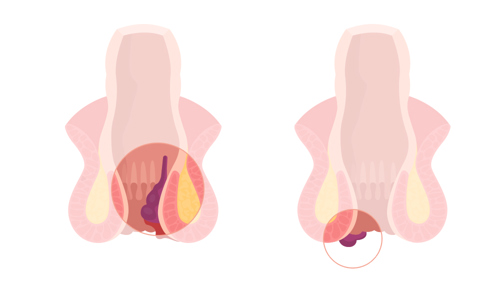 Uitwendige aambeienDeze bevinden zich aan de buitenkant van je anus. Ze voelen aan als een knobbeltje en kunnen door de extra druk die ze veroorzaken erg pijnlijk zijn. |