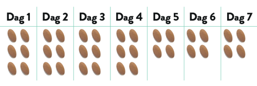 De aanbevolen dagelijkse dosering tijdens de eerste 4 dagen van de behandeling is 3 tabletten tweemaal per dag.