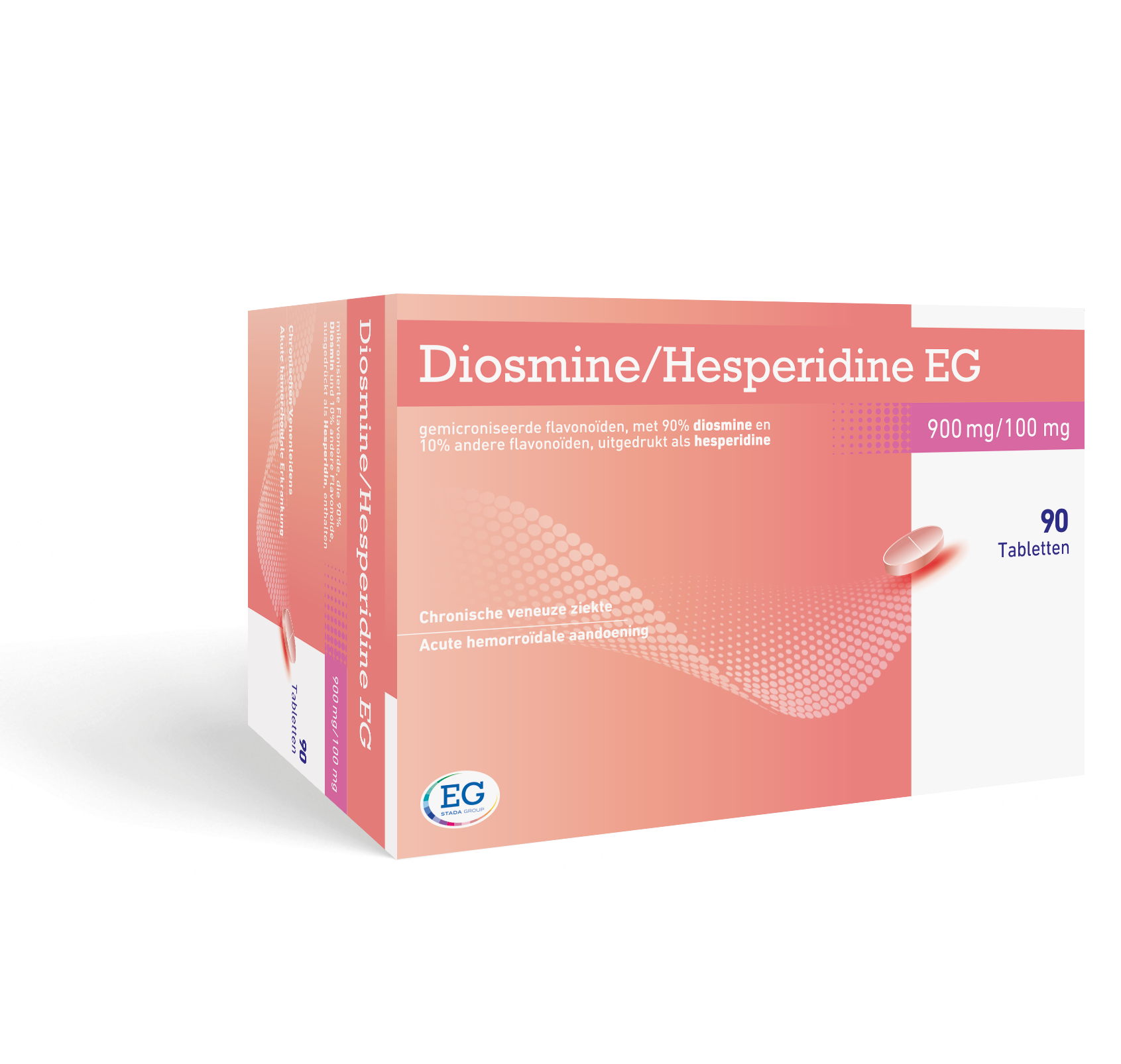 Diosmine/Hesperidine EG 900 mg/100 mg is een geneesmiddel dat zonder voorschrift vekrijgbaar is in de apotheek. Het is beschikbaar in verpakkingen van 30 en 90 tabletten.