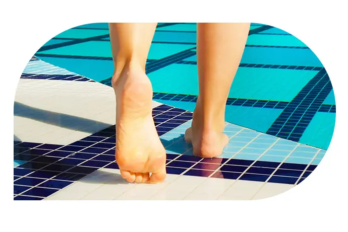 - Avoid walking or standing barefoot around the edges of pools